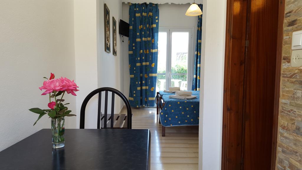 Tutti gli appartamenti del Dimitra presentano luminosi e ariosi interni arredati in modo semplice, un affaccio sulla piscina e sul giardino, un angolo cottura con zona pranzo, frigorifero, stoviglie e forno elettrico e un bagno privato con doccia. Presso lo snack bar a bordo piscina vi attendono caffè, snack leggeri e bevande rinfrescanti.