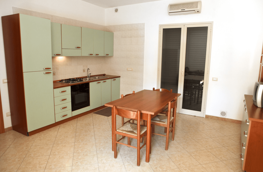 Bilocale 4: composto da soggiorno con angolo cottura e due posti letto, camera matrimoniale, servizi, balcone attrezzato, con giardinetto o patio con mobili per esterno se ubicato al piano terra;