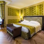 Tessuti pregiati e decorazioni lussuose con alcuni elementi in stile impero. Parquet o moquette. Alcune camere sono state ristrutturate nell'estate del 2012. Bagno in marmo italiano dalle diverse tipologie dotato di vasca. Lampade in cristallo di Murano. L'accesso all'area fitness è incluso. L'accesso all'area piscina (composta da piscina coperta, sauna, bagno turco e vasca idromassaggio) non è incluso, il costo è di 20 euro al giorno a persona.