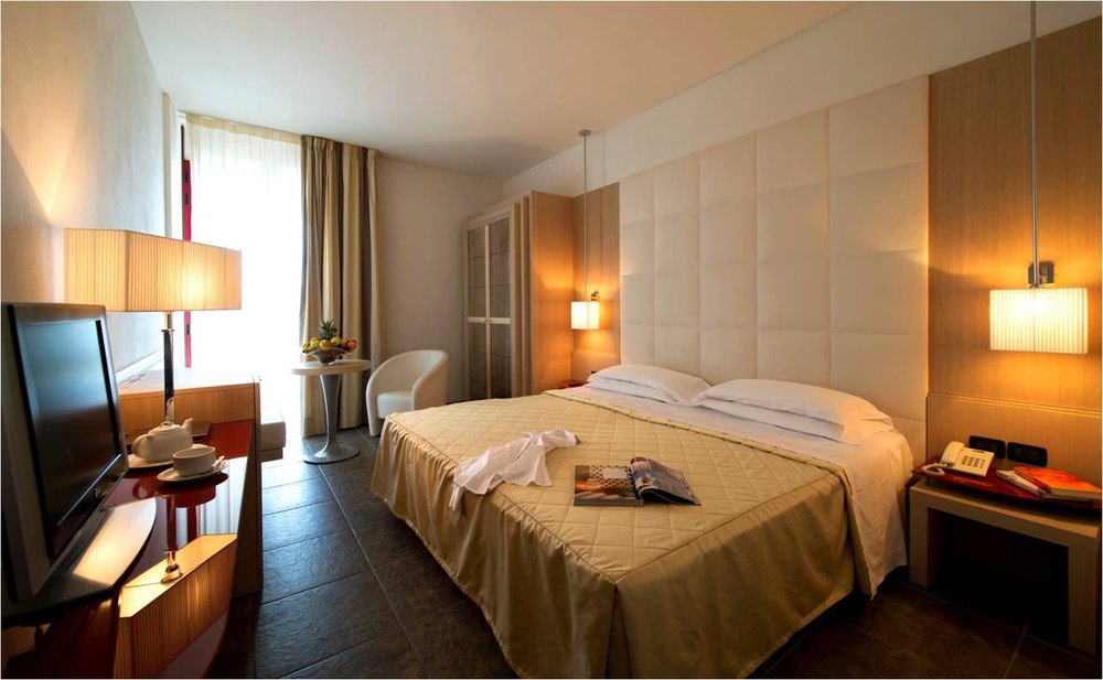 Accoglienti e confortevoli tutte le camere sono dotate di telefono, collegamento internet, tv, cassaforte, frigobar (consumazioni escluse), aria condizionata, servizi con vasca o doccia idromassaggio ed asciugacapelli. Si dividono in camere Classic con doccia idromassaggio; camere Superior con vasca idromassaggio (alcune attrezzate con servizi per persone diversamente abili). In camera Classic e Superior occupazione massima 2 adulti + 2 bambini 3/10 anni. Disponibili Junior Suite per 2/4 persone.