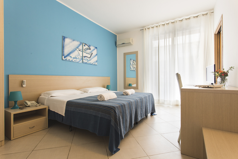 Vivace ed ospitatale la camera matrimoniale è la sistemazione perfetta per le coppie che vogliono viversi la vacanza a pieno. Dotata di letto matrimoniale, bagno privato con box doccia provvisto di phon e set di cortesia, telefono, TV, aria condizionata e se richiesto servizio sveglia.