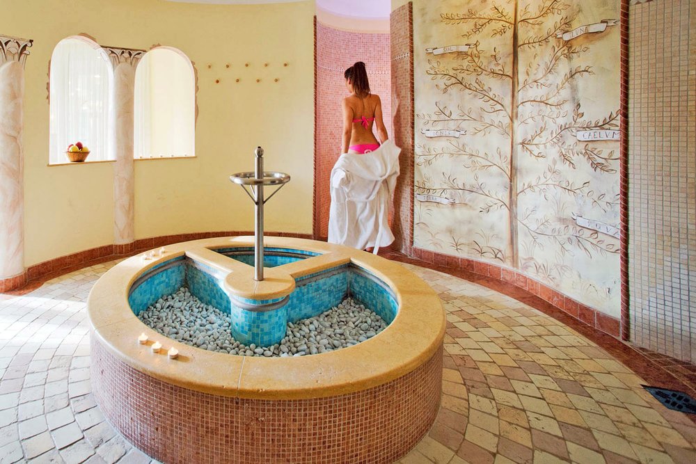 Centro Benessere di 300 mq ca, aperto tutti i giorni dalle 15.00 alle 19.30, con piscina, idromassaggio, sauna finlandese, bagno turco Aromarium, doccia a trazione con pioggia tropicale e nebbia fredda, panca calda, percorso Kneipp, palestra Technogym, sala massaggi ed estetica, solarium UVA. Accesso non consentito ai minori di 18 anni.