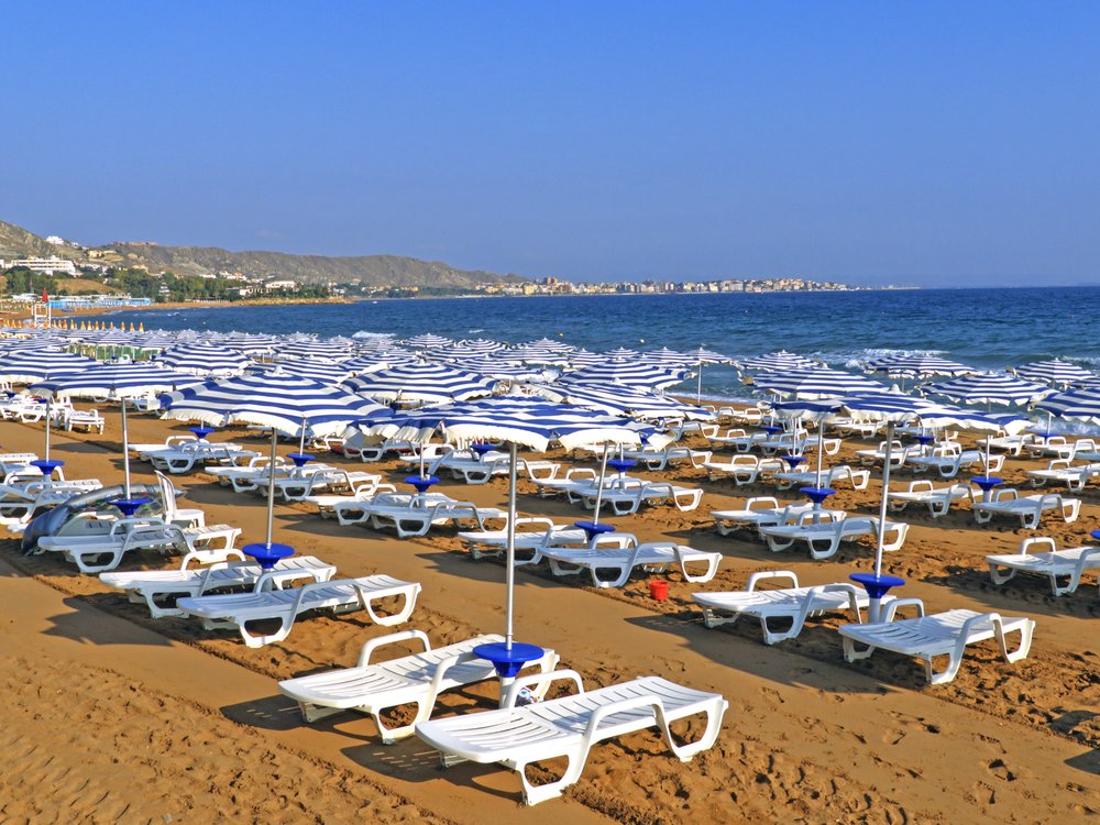 A 100 m ca, ampia, di sabbia dorata e fine, privata e attrezzata, raggiungibile a piedi. Servizio spiaggia incluso nella Club Card a partire dalla 3° fila (1 ombrellone + 2 lettini a camera).