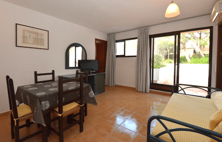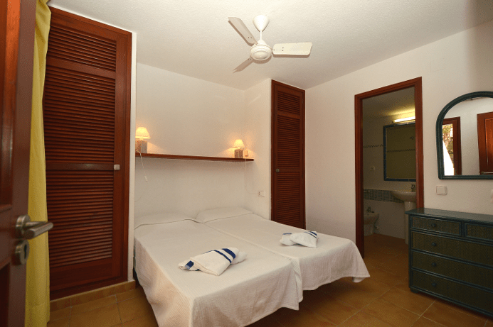 Gli appartamenti (da 4 o da 6 persone) sono composti da due camere doppie, due bagni, soggiorno con angolo cottura parzialmente attrezzato e patio. Dotazioni: telefono, TV satellitare, ventilatore/aria condizionata nelle stanze da letto e asciugacapelli a muro nei bagni.