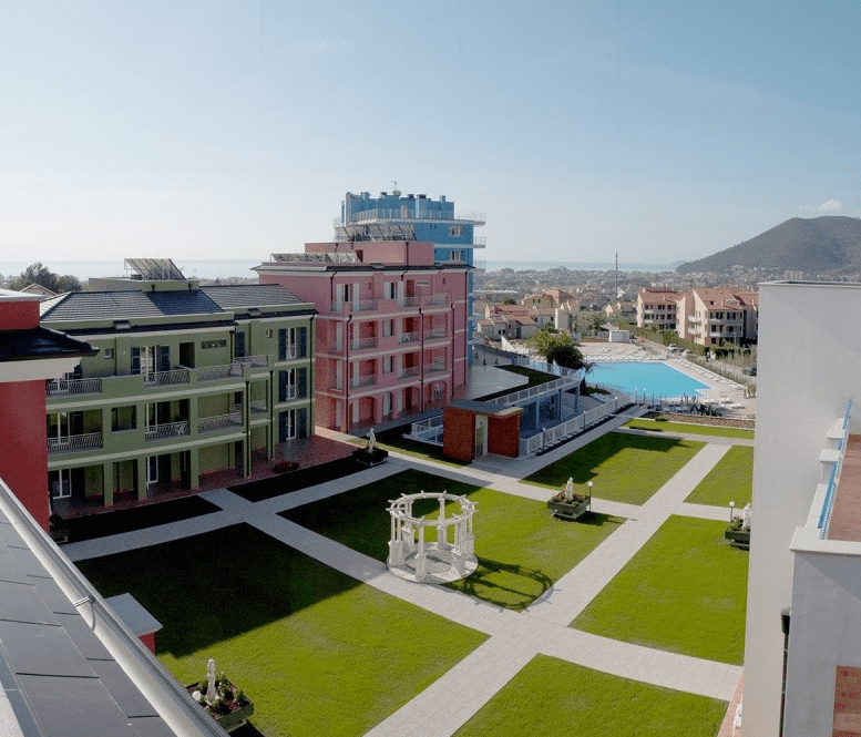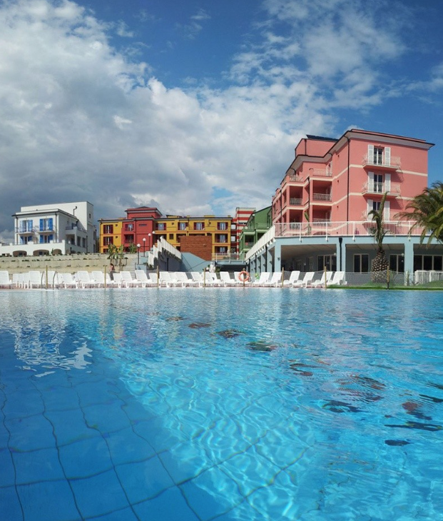 ATTENZIONE PER QUESTA STRUTTURA è OBBLIGATORIO IL PAGAMENTO (sul posto) della tessera che consente l’ingresso alla piscina interna riscaldata con massaggio cervicale e cromoterapia. € 50,00 ad appartamentoÈ il nuovo punto di riferimento, a Loano, per i vostri soggiorni di relax, di divertimento, sportivi o di business nella Riviera Ligure di Ponente. È situato a circa 900 m dal mare, in una zona residenziale lontana dal traffico cittadino, ma a pochi minuti a piedi dai servizi e dal centro. La grande piscina esterna di 800 mq, presenta un’area idromassaggio, due corsie natatorie da 25 m e una zona ad acqua bassa particolarmente adatta ai bambini ed ai loro primi passi in acqua. La piscina, inoltre, è circondata da un ampio solarium attrezzato con lettini. In più, a vostra disposizione, ampi giardini e spazi relax all’interno del complesso.