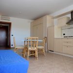 Soggiorno/zona pranzo con angolo cottura (piastre elettriche), divano letto matrimoniale e letto matrimoniale a scomparsa, servizi.