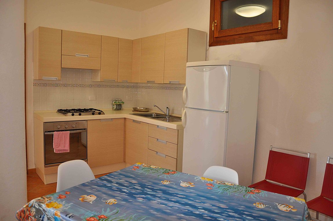 Trilocale 6 posti letto: Soggiorno con angolo cottura, camera da letto matrimoniale, cameretta con letti singoli letto a castello in sala e bagno. Aria condizionata in tutte le camere.